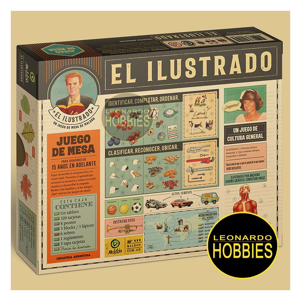 El Ilustrado es un juego de mesa de cultura general con tarjetas ilustradas donde hay que reconocer, ubicar, identificar, ordenar o clasificar diferentes elementos para demostrar todo lo que sabés. El juego cubre diversos temas y no es solo para sabelotodos del conocimiento académico: tipos de baile, yerbas, discos de los Stones, canchas de deportes, marcas, países y hasta herramientas aparecen en estas muchas tarjetas ilustradas por el talentoso Andrés Miguens.
