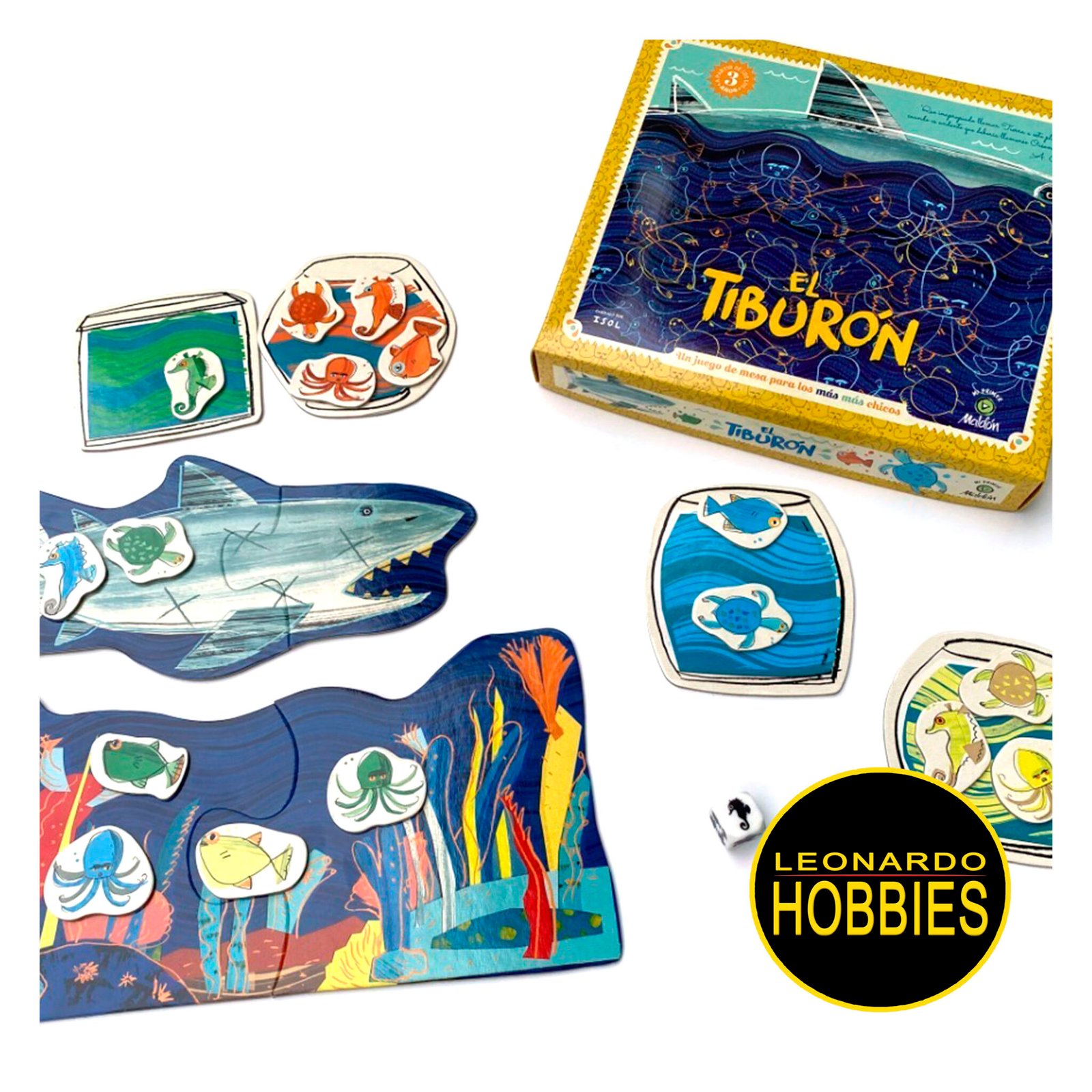 Tenemos cuatro peceras llenas de animales que tenemos que liberar al océano. Pero ojo! Un tiburón está al acecho! Tiramos el dado. Este nos muestra que animal tenemos que liberar al océano o qué animal se come el tiburón… Un juego simple y didáctico para que lo más chicos de la casa aprendan a jugar juegos de mesa: a ser pacientes, a seguir reglas, a cooperar con el otro.
